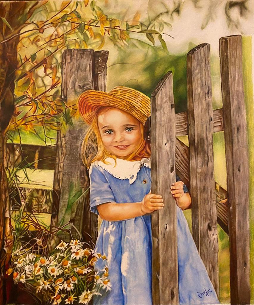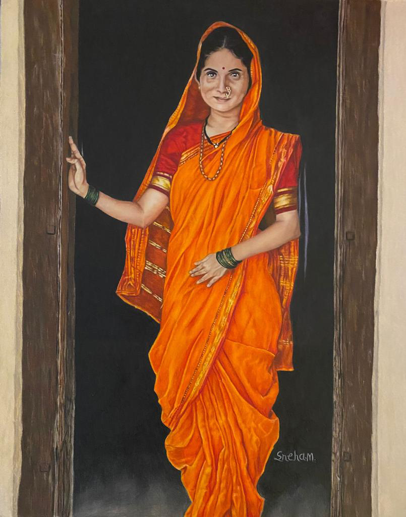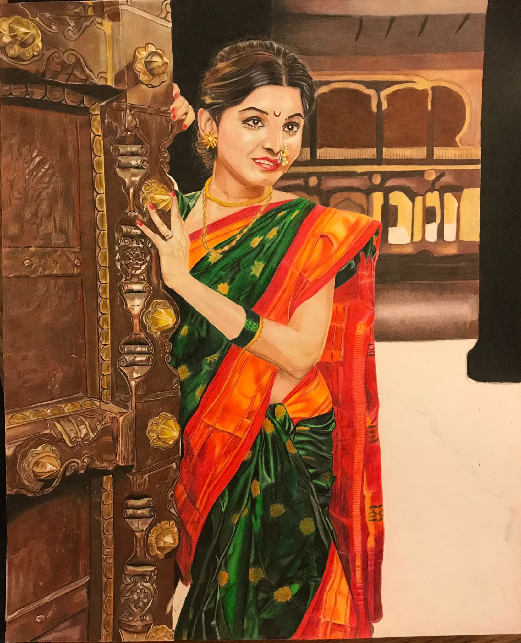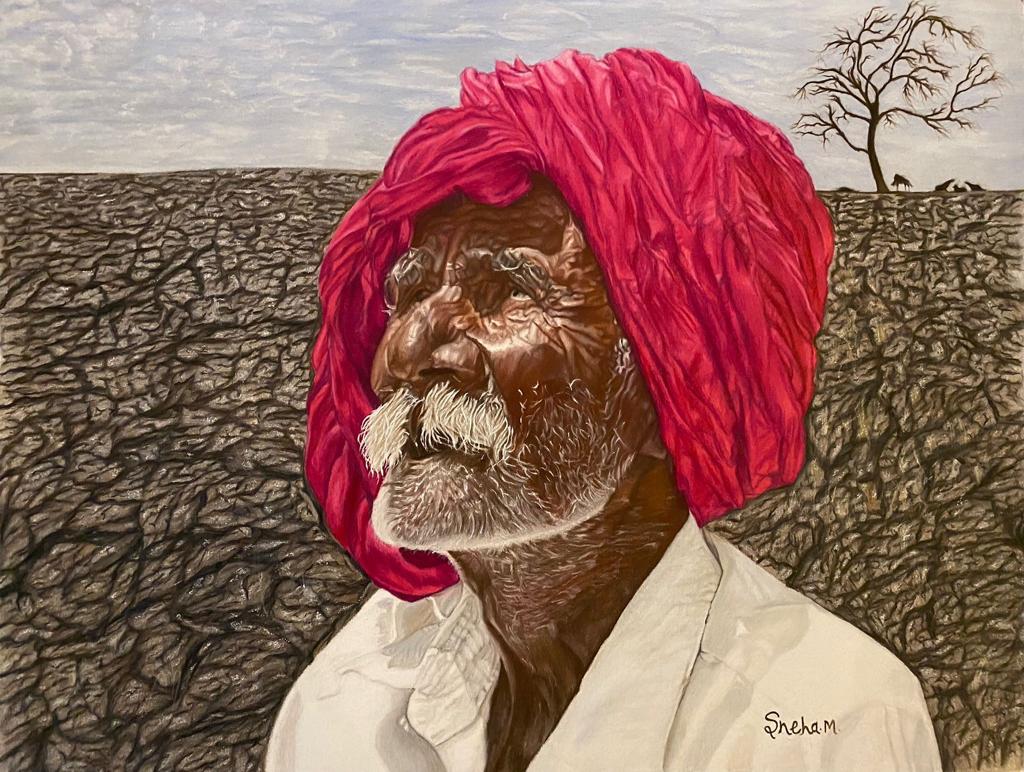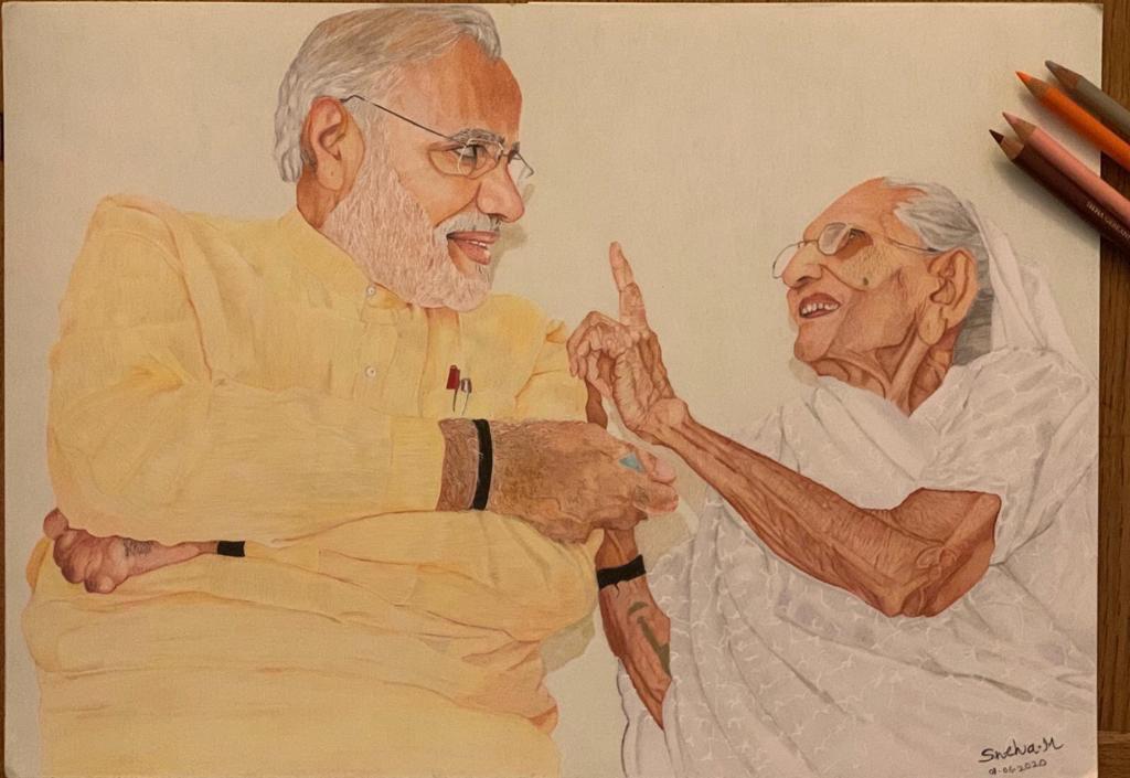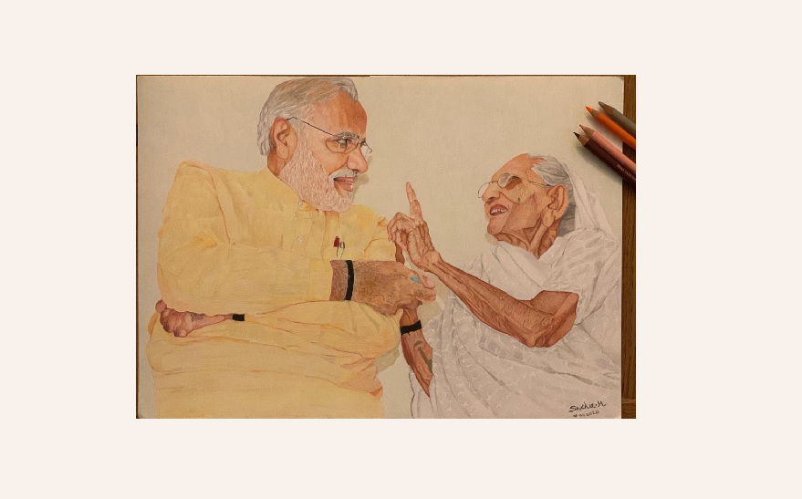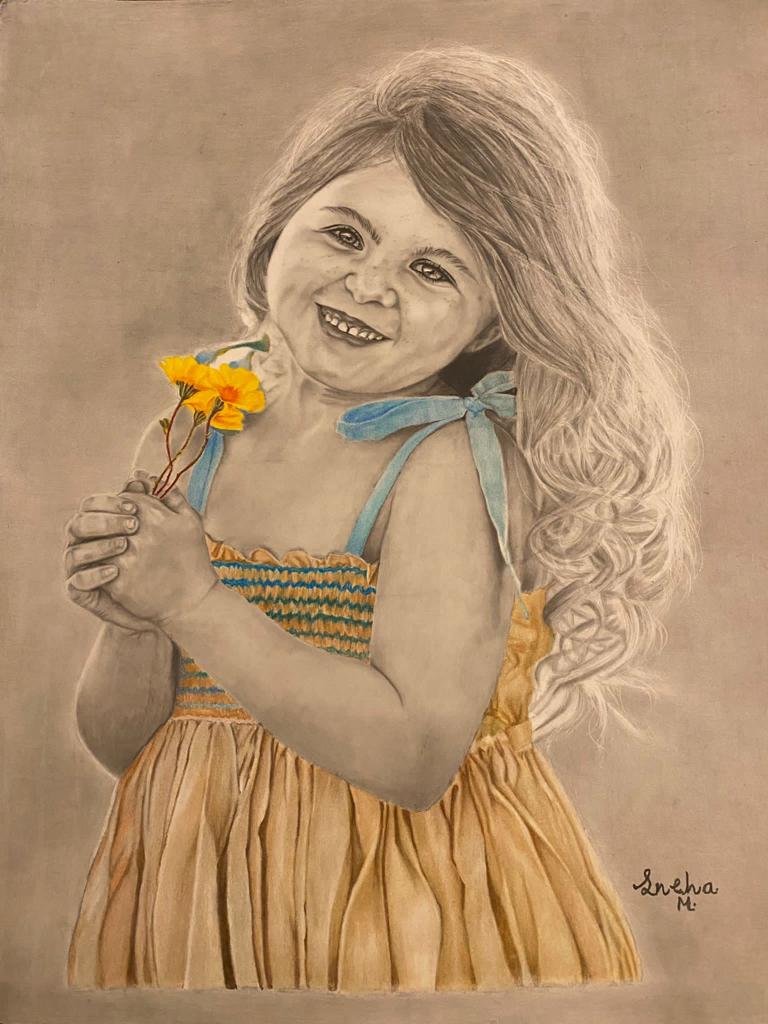 “Using Colour pencil on paper on a 22×18-inch , ‘Mother and Son’ depicts a heartfelt bond. Delicate shading and intricate details bring to life a tender moment between a mother and her son, capturing the essence of love, protection, and warmth in a beautiful, timeless pencil masterpiece.”
