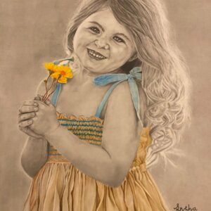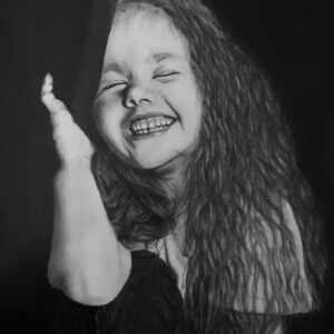 “Using graphite pencils on a 22×18-inch canvas, ‘Mother and Son’ depicts a heartfelt bond. Delicate shading and intricate details bring to life a tender moment between a mother and her son, capturing the essence of love, protection, and warmth in a beautiful, timeless pencil masterpiece.”